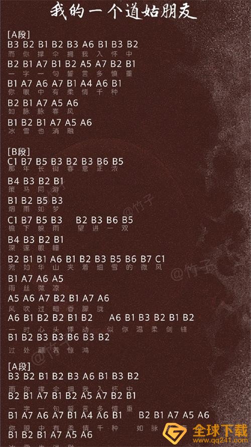 以上就是圈圈下载游戏小编为你带来的《光遇》我的一个道姑朋友乐谱详情介绍的全部内容,更多精彩游戏资讯尽在圈圈下载手游网,喜欢的小伙伴欢迎点击关注哦。